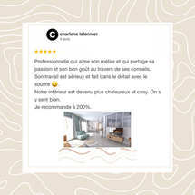 Ces échanges permettent de créer des intérieurs uniques, pensés ensemble, dans une relation de confiance et de proximité que nos clients soulignent à travers leurs avis.